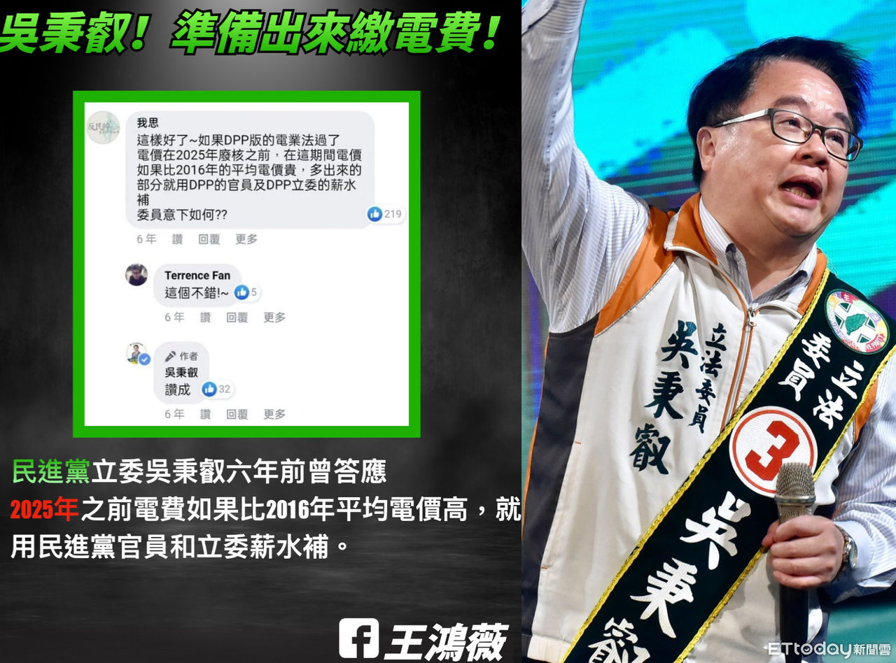 ▲吳秉睿昔日贊成「用官員薪水補電費」臉書貼文再度被翻出。(圖/翻攝臉書)