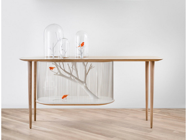 漂亮的鳥兒適合在天空中遨翔,但有的人喜歡飼養鳥兒供自己欣賞,但是自由是鳥兒的天性,寵物鳥該怎麼辦呢?法國設計師Grégoire結合了家具和鳥籠,鳥籠木桌就像是一個會動的盆景,主人和鳥可以有更近距離的接觸,鳥兒們也可以更自由的活動,讓桌子不再是靜止不動的家具,而是可以讓家中更活潑的配備。