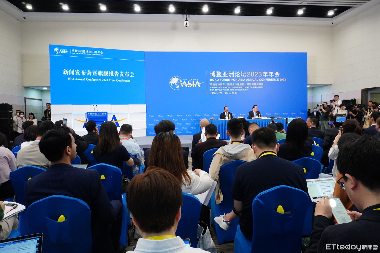 ▲今年有超過1100名記者參與博鰲亞洲論壇,發布會內座無虛席,不少媒體人只能站立一旁 。(圖/記者蔡儀潔攝)