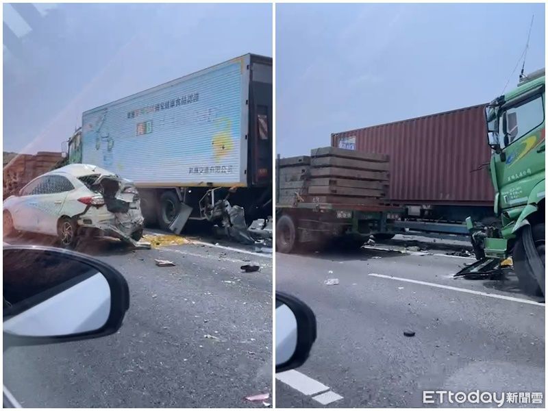 ▲▼ 國一南向下營系統連環撞 。(圖/民眾提供)