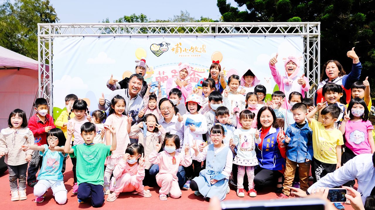 張善政在清明連假期間前往楊梅埔心牧場參加運動童樂會,今天在臉書上發文,「我很喜歡和孩子在一起,他們的熱情和笑容,總是可以把歡樂帶給身邊的人,這幾日埔心牧場舉辦萌萌盃運動童樂會,我也到現場和孩子們一起互動同樂,慶祝兒童節。」