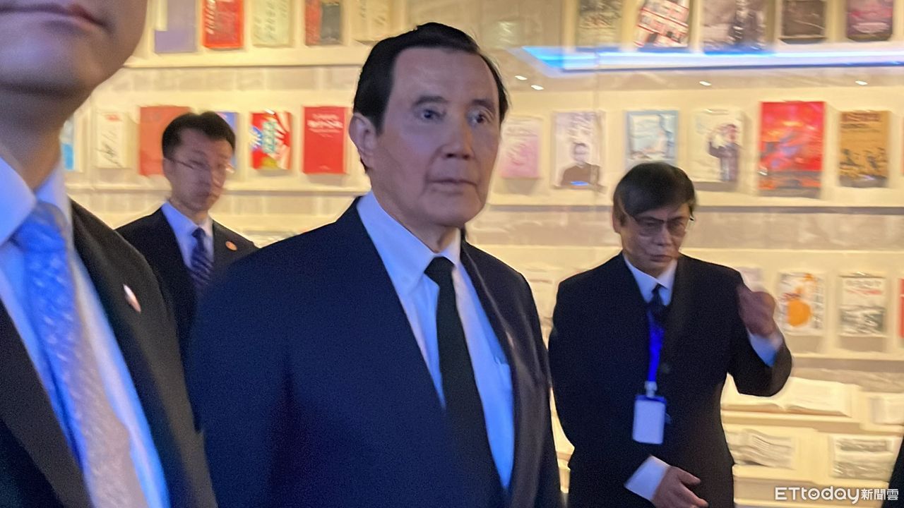 馬英九一邊點頭並露出欣慰又凝重的神情,直至講解員解說完,難掩激動地和團員們一同拍手鼓掌。