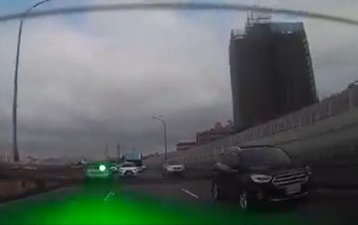 1名網友在臉書社群「WoWtchout - 地圖型行車影像分享平台」分享一段影片,一台轎車行經北市水源快速道路,由北往南行駛,在靠近基隆高架道路閘道口,後方休旅車前座竟然射出一道雷射光,造成駕駛眼睛受不了,甚至無法直視前方路線,只能選擇下交流道就醫。