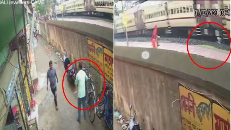 ▲▼男子停下腳踏車後,急忙奔向月台。(圖/翻攝自YouTube/Hosen Sekh)