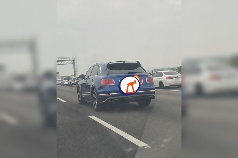 依據照片內容,該輛休旅車的車牌為「XXX-8888」,且車尾標誌有個帶有翅膀的「B」符號,事實上根本不是Mini Cooper車廠的車輛,而是豪車品牌「賓利」的休旅車,價格完全不在同一個等級。