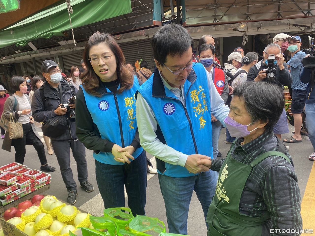 ▲立委鄭麗文陪同費鴻泰掃市場。(圖/記者黃國霖攝)