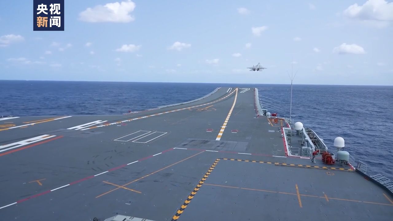 ▲殲擊機在山東艦上起降的畫面。(圖/翻攝自央視)
