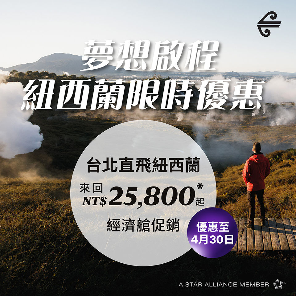 邊境解封,各家航空公司都推出優惠促銷,紐西蘭航空自即日起至2023年4月30日,限時推出台北直飛紐西蘭的經濟艙促銷,來回只要台幣25,800元起,機票使用時間為 2023 年5月9日至2023 年6月20日期間,以及2023 年7月22日至2023 年10月31日期間。