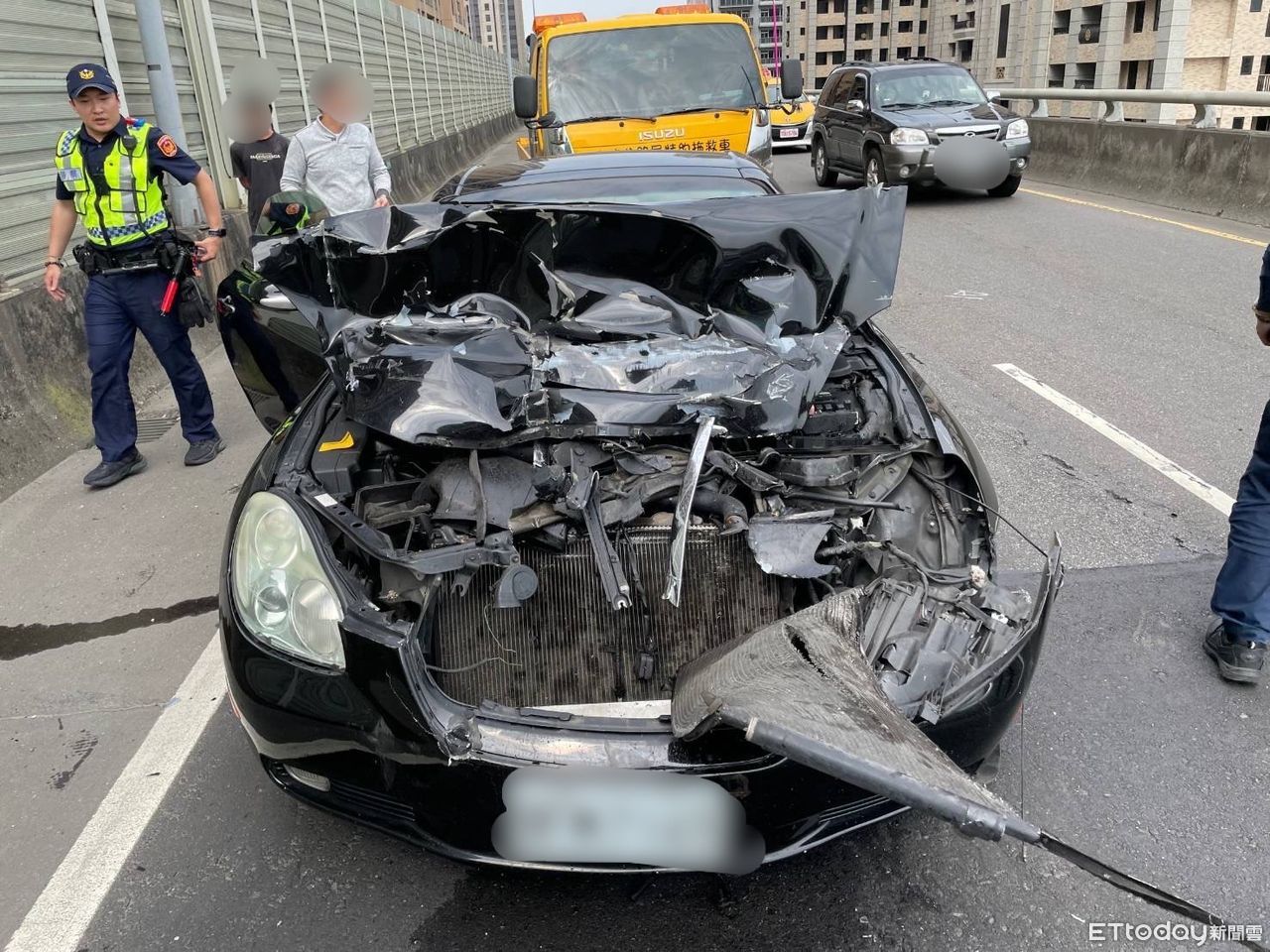 42歲林姓男子11日上午9時許開著LEXUS敞篷車沿台一高架道外側車道往三重方向行駛,行經肇事地點時,與前方同向67歲鍾姓駕駛所開的白色小貨車發生碰撞。