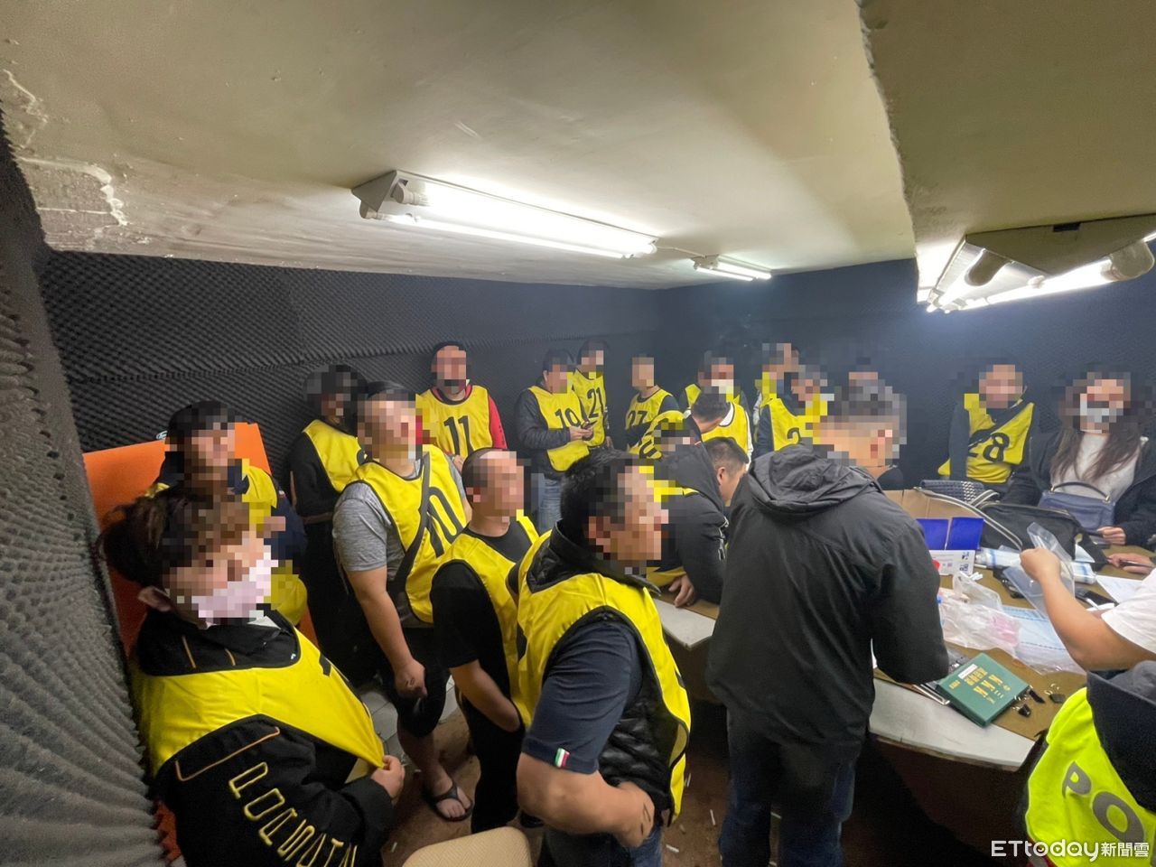 警方昨天凌晨2時許突襲破門,地下室擠滿35個人,賭場氣氛正是熱絡,但這群賭客見到團團警方包圍,根本無處可逃,每個人都乖乖領1件號碼背心回牌桌坐好,以便警方清點人數。