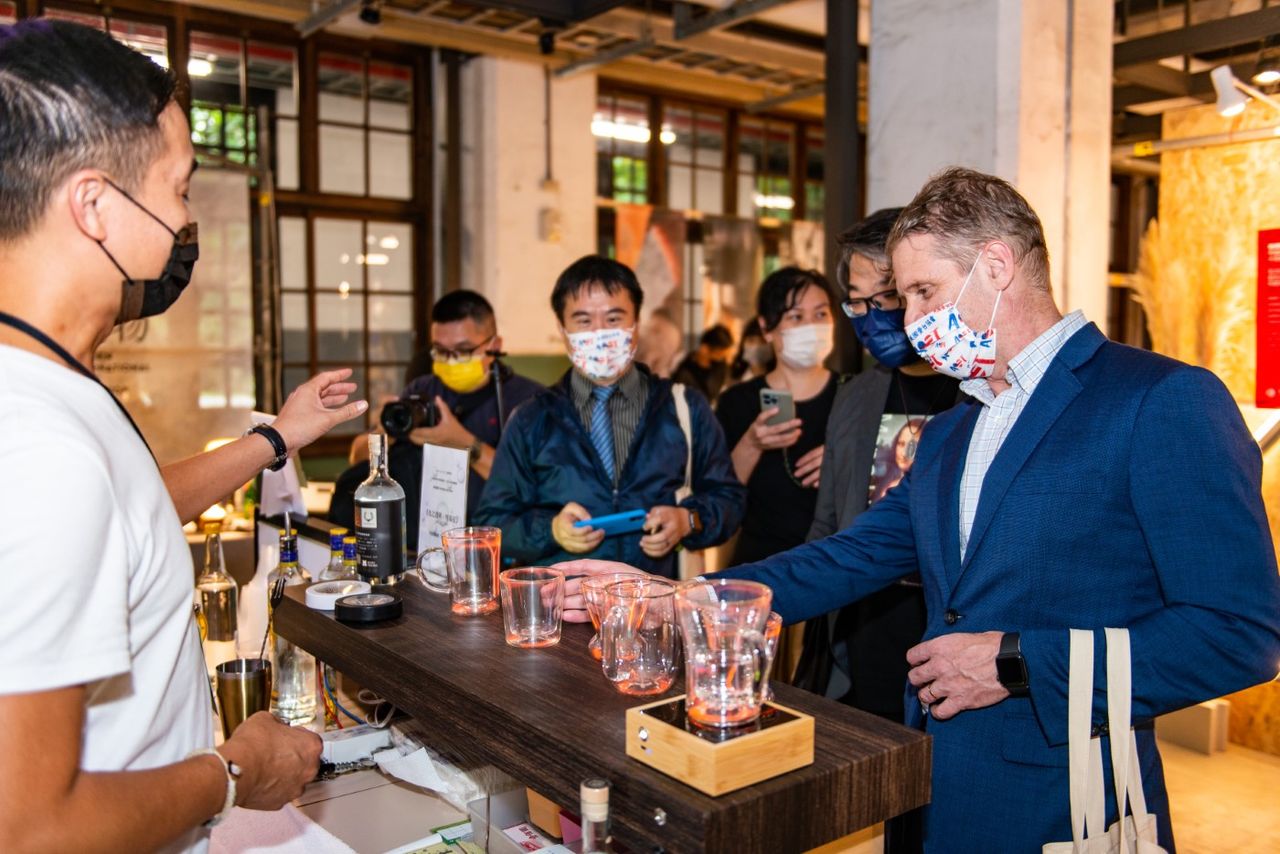 ▲美國在台協會文化官馬明遠於「2022年松菸職人風格市集」蒞臨新竹市展售攤位。(圖/新竹市政府提供)