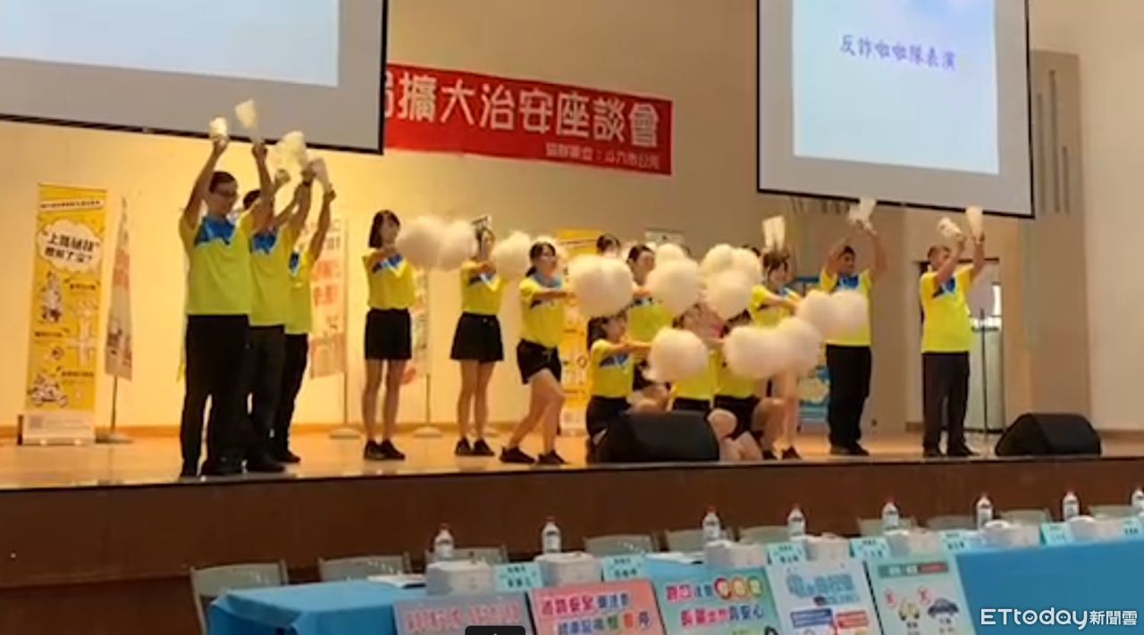 ▲斗六警分局舉辦社區治安座談會,活動由雲林縣警察局全國首創「打詐啦啦隊」熱鬧開場。(圖/記者蔡佩旻翻攝)