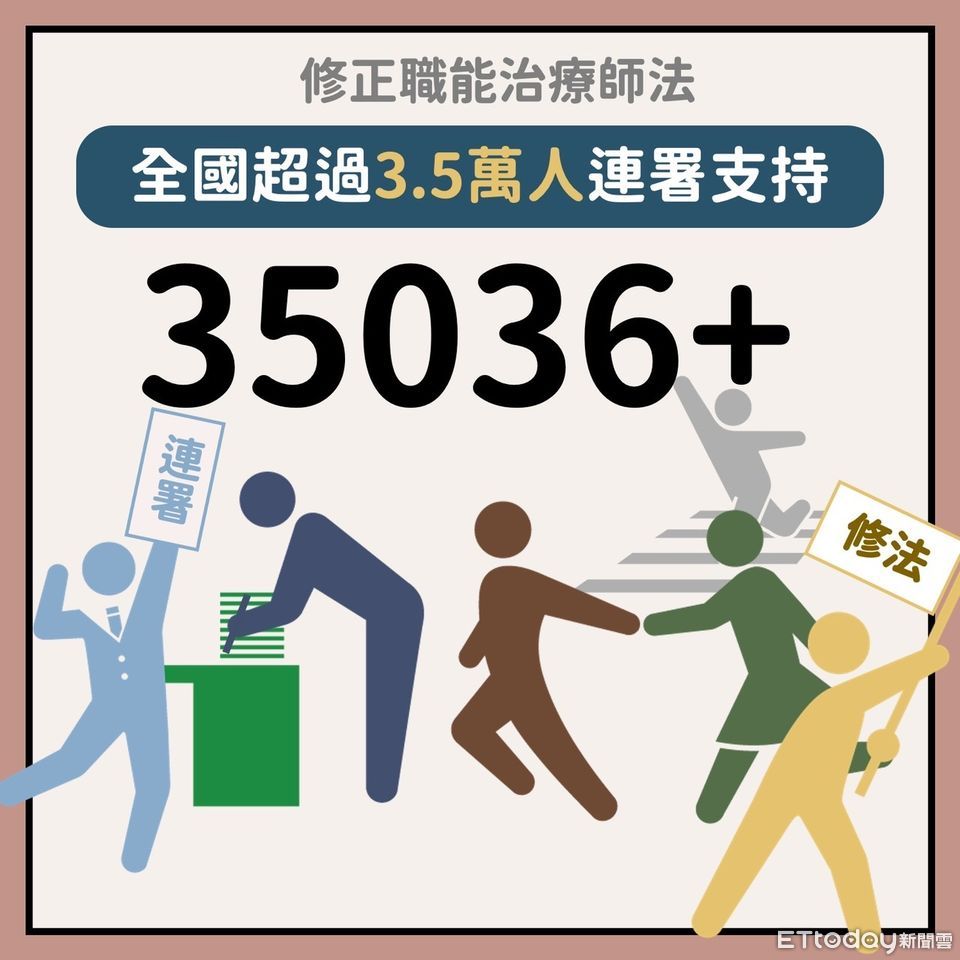 職能治療師法修法聯盟指出,目前該聯盟已積極與民眾互動,向民眾推廣前述修法的重要性邀請一起加入連署活動。截至目前為止個人連署已經突破3萬5千人,團體連署更獲得廣大的迴響超過了50個單位,本次更藉由全國11所大專院校職能治療學系(科)的連署,呼籲政府修改不合時宜的職能治療師法條文,讓治療師能在「 非以疾病治療為目的」的情境下,直接合法地為民眾提供服務。