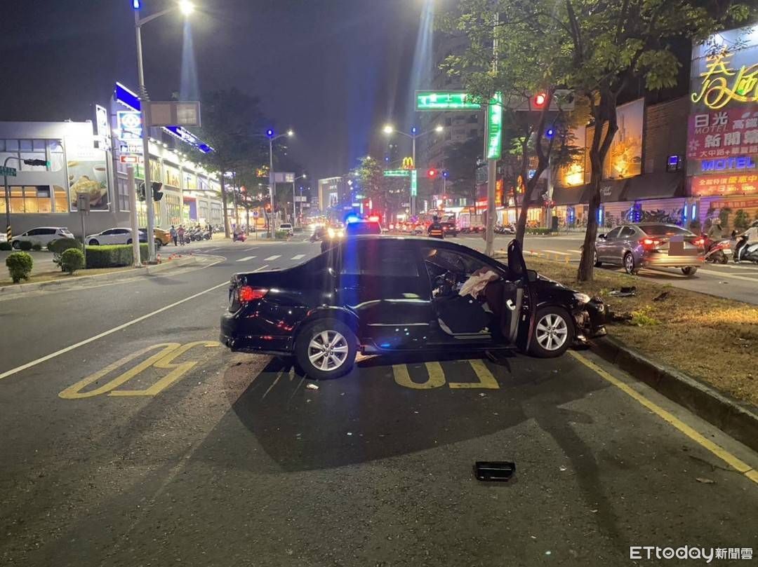 ▲一名王姓駕駛下班時間一時恍神,自撞路樹 。(圖/記者吳奕靖翻攝)