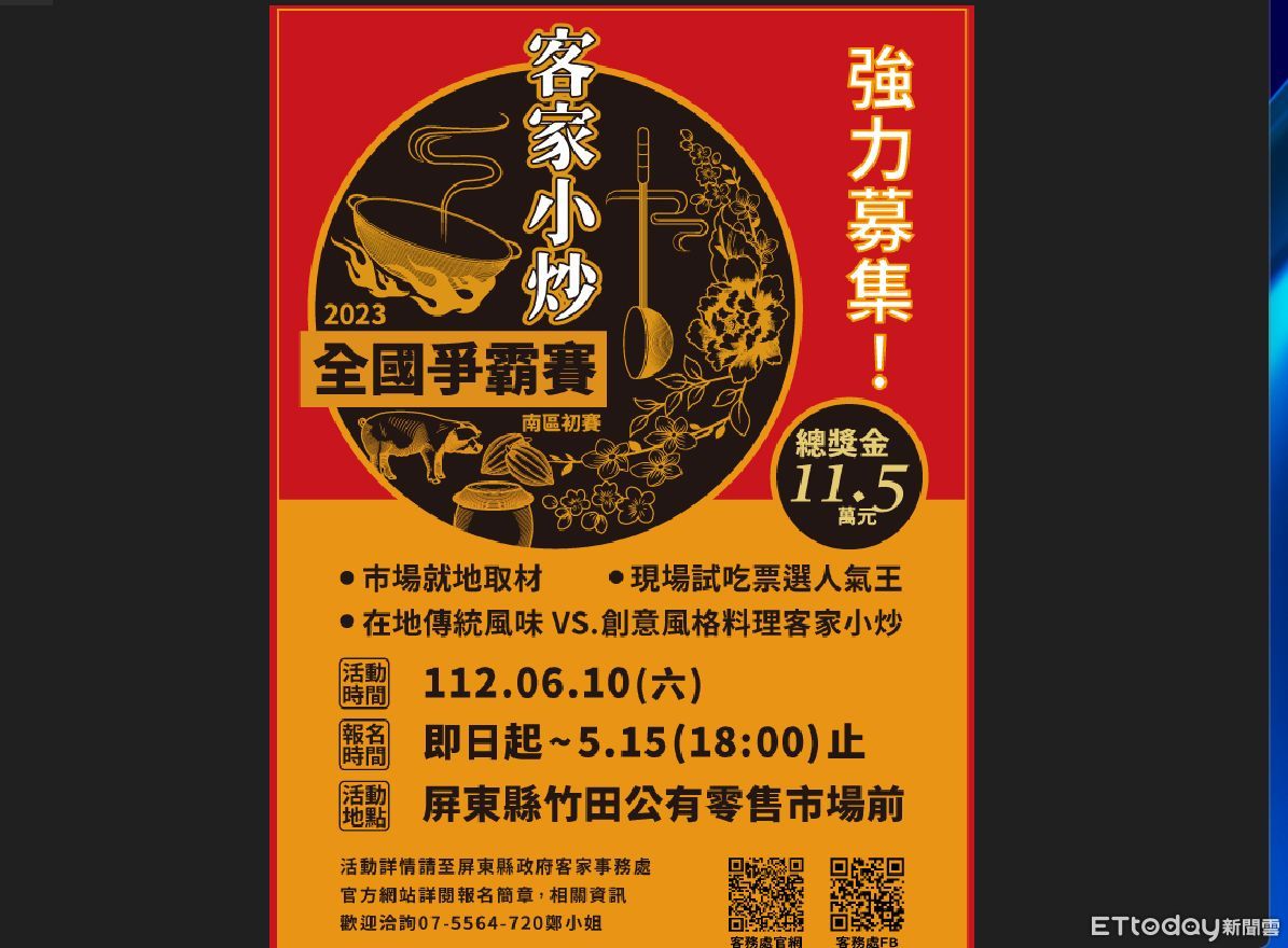 ▲「2023客家小炒全國爭霸賽南區初賽」即日起報名 。(圖/記者陳崑福翻攝)