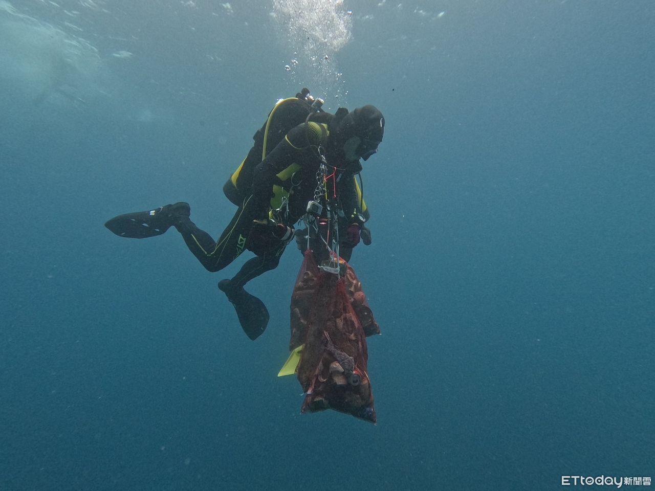 經 2 小時的努力海下大掃除,共計清出約 70 公斤的垃圾量,內容除廢棄漁繩網、鋁鐵罐、寶特瓶及多種人造用品,今年垃圾量較往年少,顯示民眾已有愛海意識,呼籲大家從生活中落實源頭垃圾減量行動。