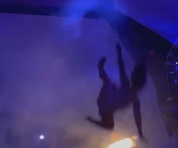 綜合外媒報導,這起事件發生在表演開場的5分鐘後。當時,這名舞蹈演員正挂在高空的一塊布簾上旋轉,而舞臺正中央則有一名雜技演員正在表演火舞,四周的燈光十分昏暗。