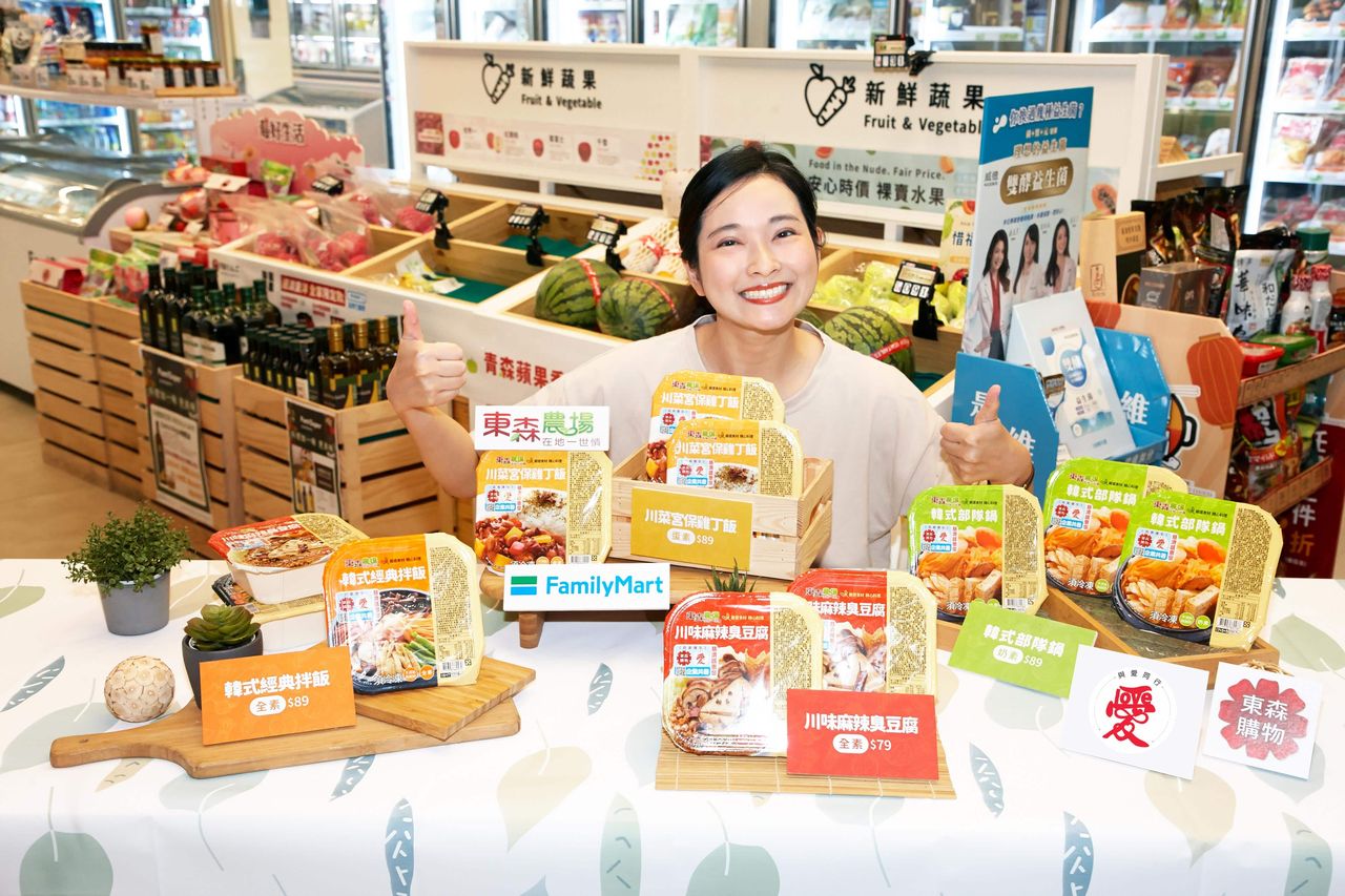 ▼▲「東森農場天地糧莘蔬食組」餐盒,包含宮保雞丁飯、韓式經典拌飯、韓式部隊鍋、麻辣臭豆腐,四種口味皆為素食商品,同步在全家便利商店上架販售。(圖/東森購物提供)