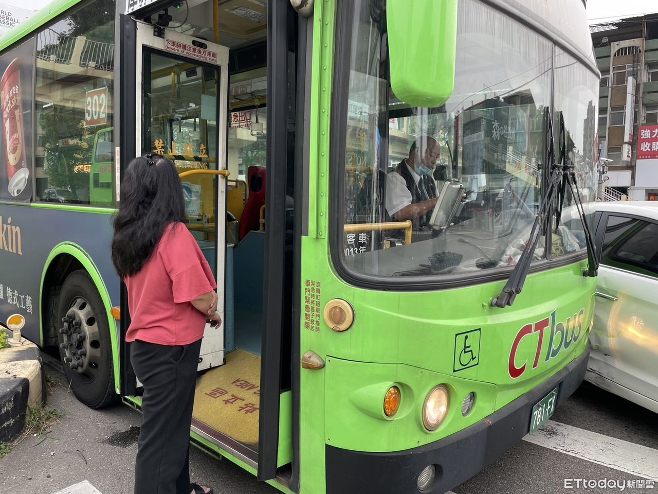 公車司機在車上直說「這也太離譜了吧」、「叫警察」,女駕駛一臉惶恐,慢慢走出車外觀看,乘客只好一一下車,徒步走到下一站轉乘。