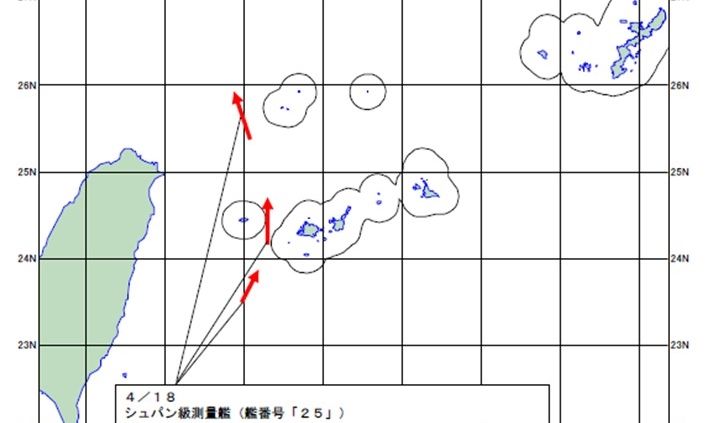 日本防衛省統合幕僚監部(類似國防部參謀本部)4月18日公布中國海軍艦艇動向,一艘共軍測量艦同日清晨5時左右,經台灣東方海域朝東北方航行,穿越日本兩座離島北上。