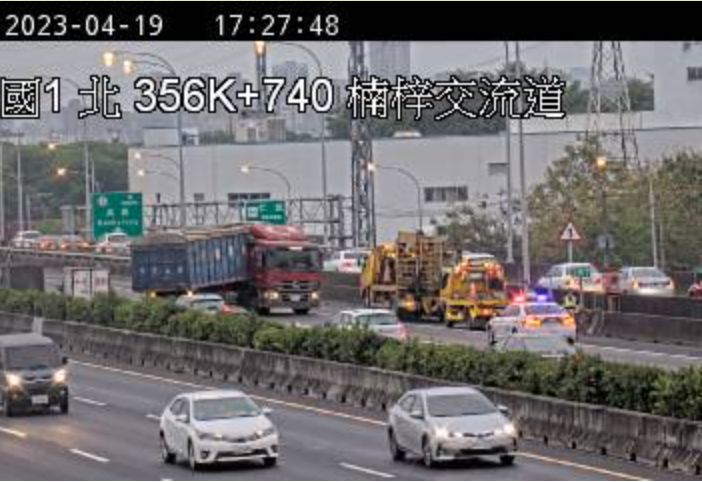 國1南向357k楠梓段,今(19日)17時16分發生大貨車撞護欄「折甘蔗」,占用中間及外側車道,現場進行拖吊處理中,後方回堵約5公里,詳細事故原因仍待釐清。
