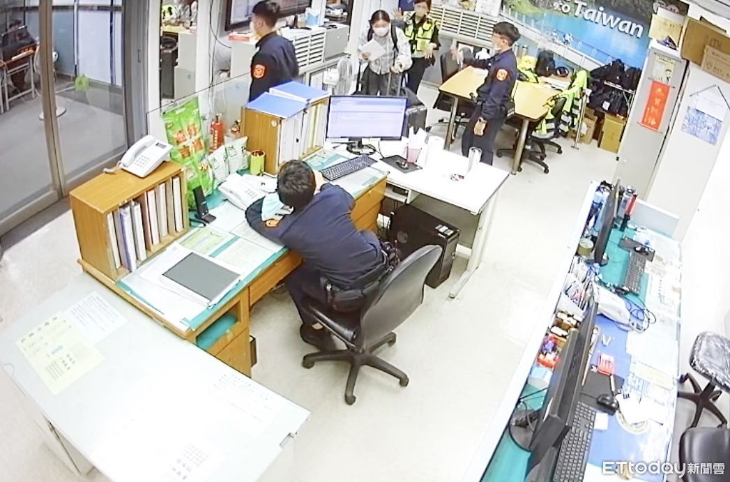 ▲日裔加拿大女子阿部(譯音)17日清晨向航警局報案希望幫忙協尋手機,員警經過15小時接力協尋,順利找回手機,阿部離去前不斷感激。(圖/記者沈繼昌翻攝)