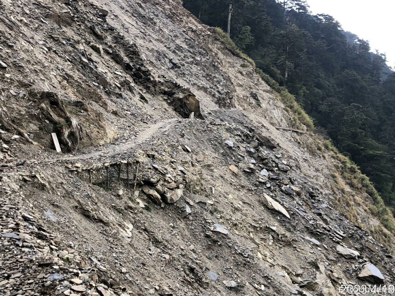 ▲能高越嶺國家步道西段近日因降雨出現落石崩塌,暫時改行替代道路。(圖/記者高堂堯翻攝,下同)
