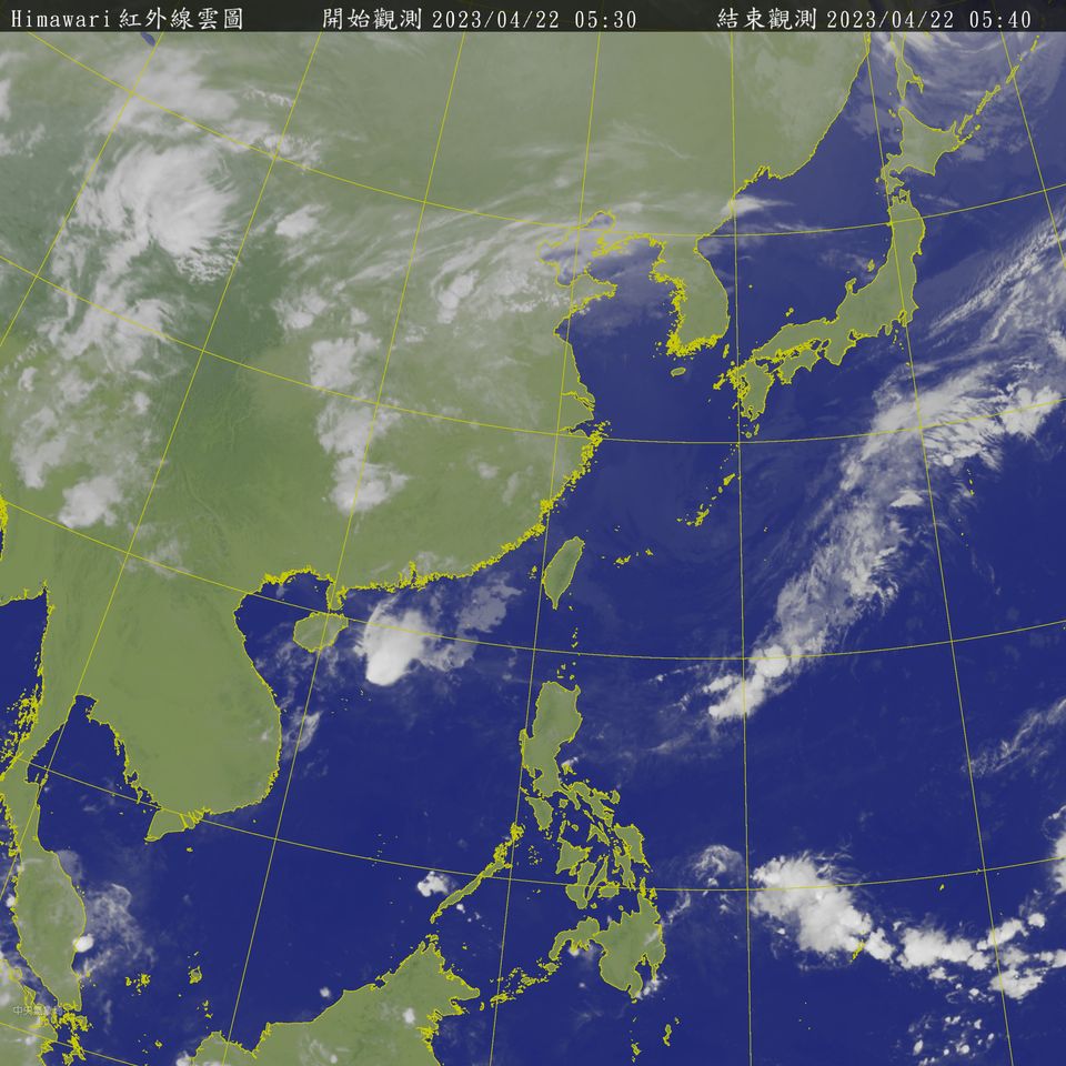 中央氣象局預報員趙竑指出,今天(22日)台灣附近中低層水氣仍多,中南部、花東及澎湖雲量較多有局部短暫陣雨,其他地區亦有零星短暫陣雨;氣溫整體而言和今天類似,預測高溫方面,北部及東半部24-26度,中南部可達29度左右;低溫在北部及宜、花約19、20度,其他地區21-23度。