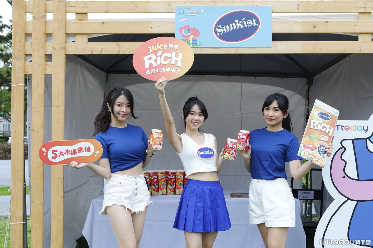 ▲美國加州知名百年水果品牌的「香吉士Sunkist」為「好朋友春日趴」帶來免費試飲的「濃郁柳橙豔陽果汁」、「濃郁蘋果活力果汁」兩款濃郁果汁,熱情的Sunkist girls也為現場的民眾帶來全力應援!(圖/記者湯興漢攝,下同)