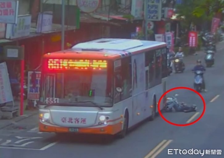 畫面中只見少年騎著車搖搖晃晃,接著卻幾乎沒減速的撞上在路邊上下客的公車,直接人車倒地,正當公車司機下車察看時,不到幾秒後正巧有員警經過,立刻上前協助。