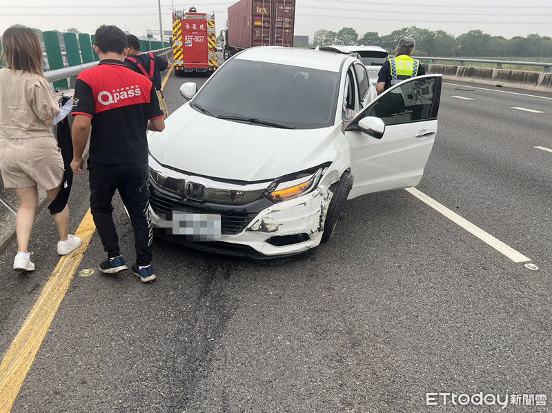▲國一南下318公里永康段發生小客車車禍,1名女子受傷送醫。(圖/記者林悅翻攝,下同)