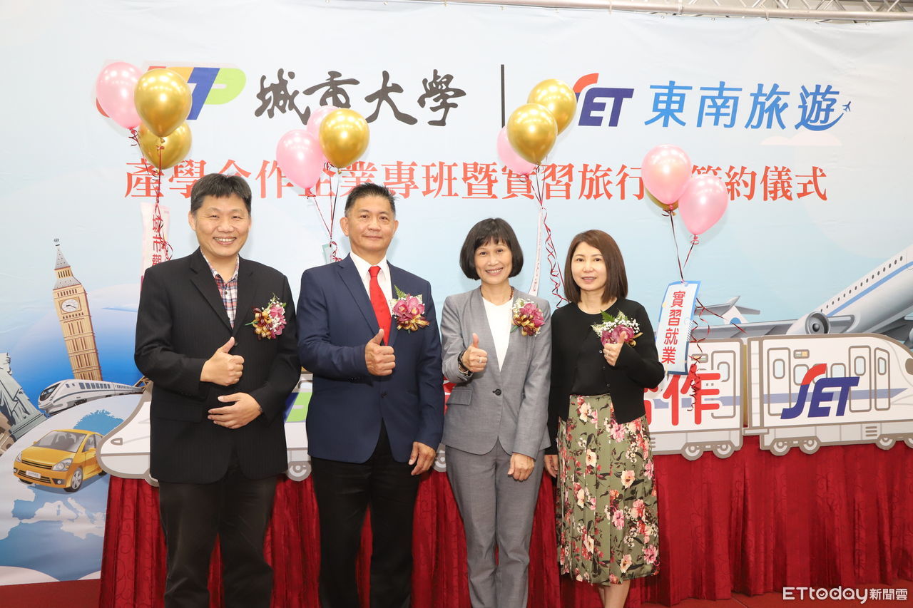 隨著疫情趨緩,觀光產業業績蒸蒸日上,為了讓觀光人才不斷鏈,台北城市科大今(25日)宣布攜手東南旅遊,首創「東南旅遊專班,並以產學合作模式成立城市科大實習旅行社,未來東南旅行社專家到校協同教學,將提供學生實習機會,企業則從中挑選菁英,為疫情解封後的觀光新市場注入新血輪。