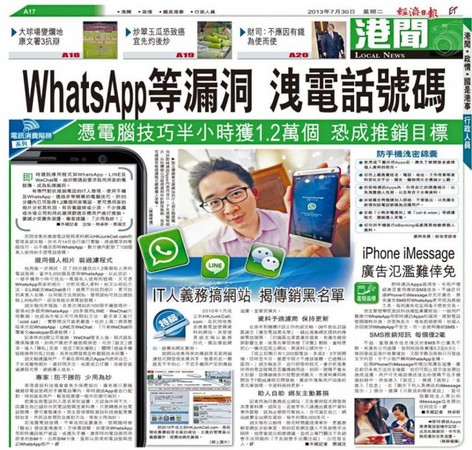 有專門對抗推銷電話技術人員表示,用手機使用即時通訊軟體,可透過簡單的電腦技巧,在半小時內就可取得1萬2千件用戶個人資料,可進行用戶個資分析,然後進行廣告的干擾。同樣的做法,使用在LINE和WeChat測試,不但能找到用戶照片,甚至可以連至用戶社群網站,只是無法得到電話號碼。