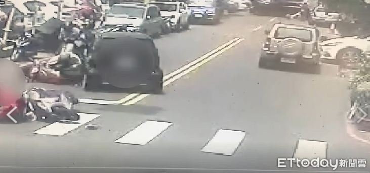 未料,劉姓女駕駛疑似太過緊張,油門繼續踩著往前行駛,又撞上對向2名正在停等紅燈的女騎士,接著該部車輛又往右偏移,撞上停在路邊的4部機車才停下。