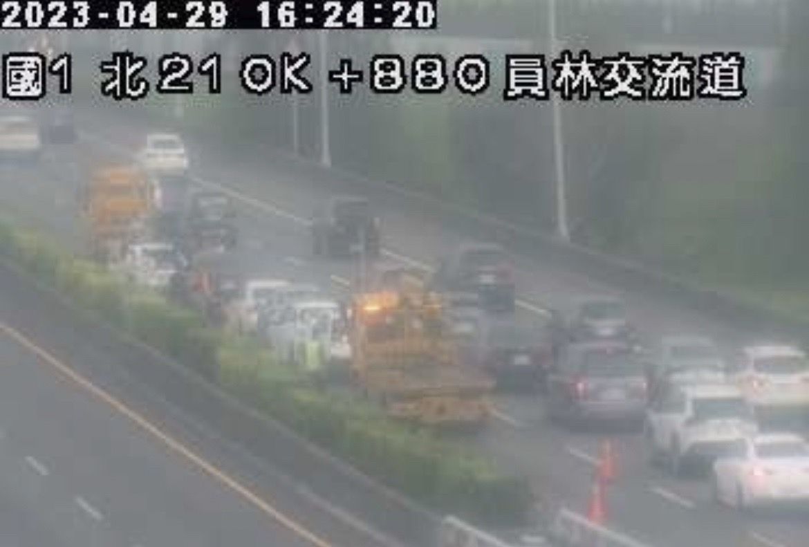 ▲國道1號南下員林交流道發生車禍。(圖/翻攝自國道監視器,下同)