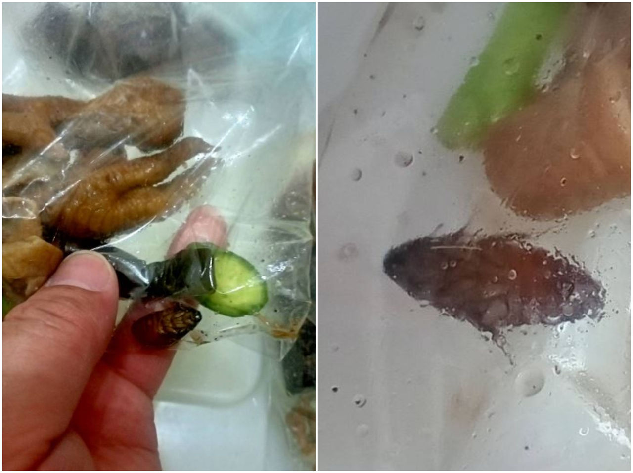 原PO一聽驚覺大事不妙,仔細看了一下袋中的食物,驚見裡面竟然藏了蟑螂,這才開始回想「我剛開始吃就吃到幾顆米血,好像爆漿滷鐵蛋,但是因為有滷香,所以沒什麼特別感覺」,沒想到都已經快吃完了,才發現蟑螂躲在裡面,讓他相當崩潰。