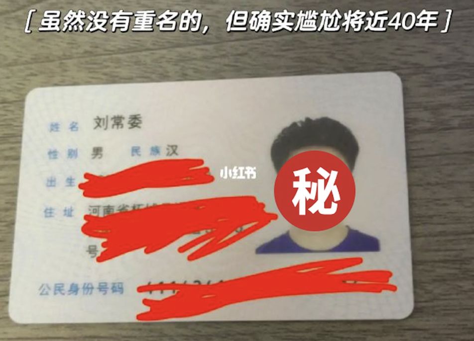 劉男於小紅書以「感謝爸媽取的名字」發文,雖然父母替其改的名字沒有重名,但「確實尷尬將近40年」,又感嘆「沒能如您(父母)所願,取名字需謹慎」。