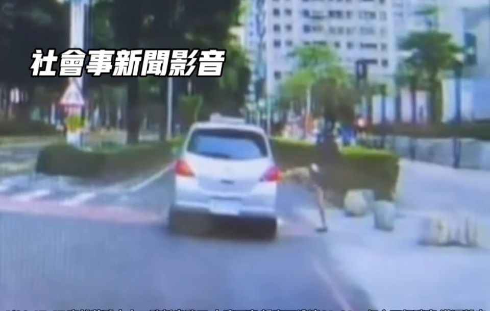 ▲高雄OL在路口狠踹不禮讓行人的汽車 。(圖/翻攝自臉書社群「社會事新聞影音」)