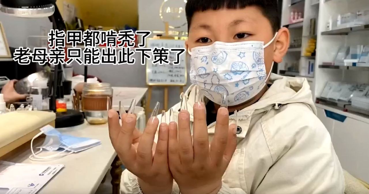 遼寧錦州一名8歲男童因愛啃指甲,被媽媽帶去做美甲,10根手指頭變得又尖又長。男童媽媽表示,做了美甲之後,兒子這幾天已經沒有再啃指甲,感覺效果還不錯。