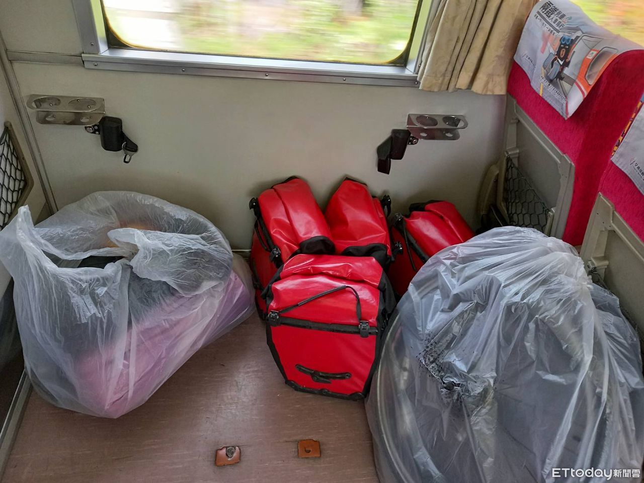 ▲民眾須將自行車完整包裝至攜車袋內才能搭無車架自強號,卻有旅客用塑膠袋包一包也過關。(圖/讀者提供)