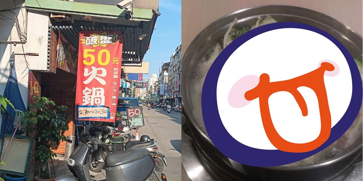 一名網友在臉書《爆廢公社》震驚表示,日前看到店家掛出「破盤!50元火鍋附菜盤、牛or羊or豬(三選一)、白飯」的紅布條,時間為12:30至20:30。好奇心驅使下,原PO決定入內嚐鮮一番。