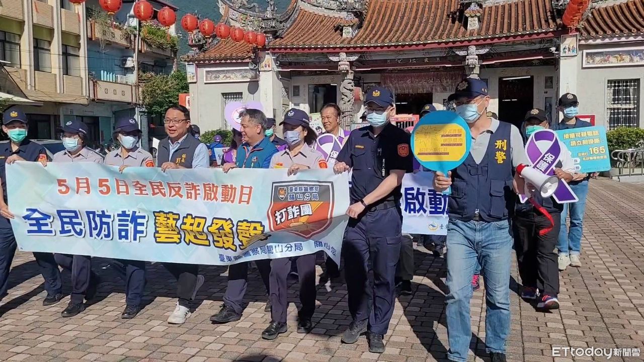 內政部警政署為擴大防詐宣導成效,特邀請40多位藝人,於5日14時至16時,在警政署2樓大禮堂,以網路直播方式辦理「全民防詐-藝起發聲」活動,呼籲全民共同防詐。台東縣警察局關山分局除運用網路社群(LINE及臉書)、機關LED跑馬燈、村落廣播及於各鄉(鎮)活動中心全面宣導外,於5日7時許,分局長林志弘更聯手關山鎮長彭成豐及中福社區理事偕麗娟,率分局同仁、女義警及中福社區志工等約30人,拉起大型布條,從天后宮徒步至傳統市場「快閃」宣導,沿途民眾均比起大拇指喊讚,效果十足!
