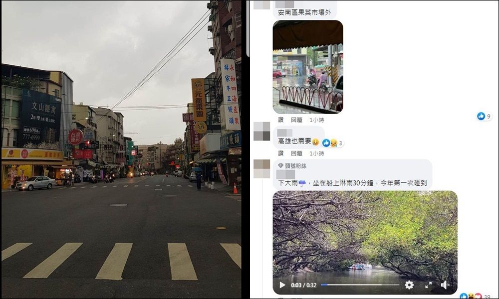 另外,粉絲專頁「台南式 Tainan Style」也分享好消息,「三大水庫都下雨啦!」「台南大雨特報,全境降雨中,曾文、南化、烏山頭水庫降雨中。」