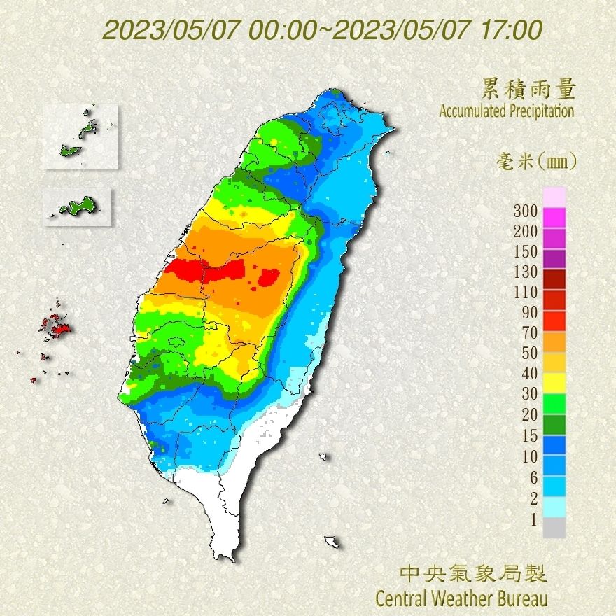 ▲今日累積雨量圖。(圖/氣象局)
