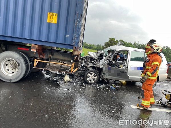 警方調查,這起車禍發生於8日上午8時許,鄭姓男子駕駛客貨廂型車行駛台66線西向7.4公里處,疑天雨視線不良,直撞追撞前方由37歲魏男所駕駛聯結車,巨大的衝擊力讓廂型車直接衝入貨櫃車車底下卡住動彈不得,造成車頭幾乎全毀,擋風玻璃碎裂。