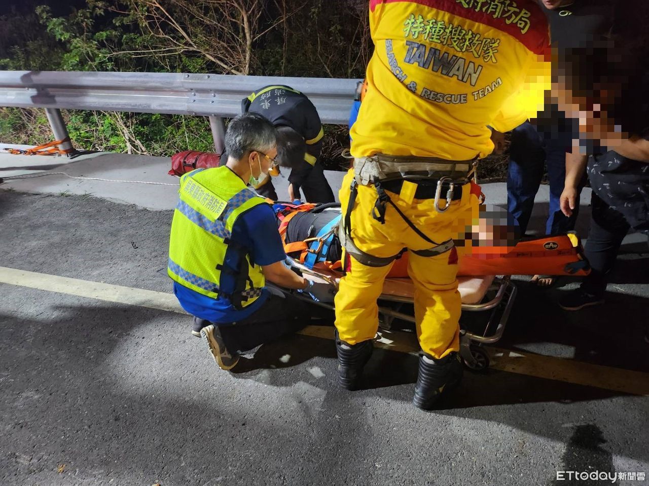 另一名傷者由於腿部骨折無法移動,枋山及獅子分隊救助人員利用枋山分隊器材車吊臂及繩索器材,將患者脫困後由獅子分隊救護車送至恆春醫院進行治療。
