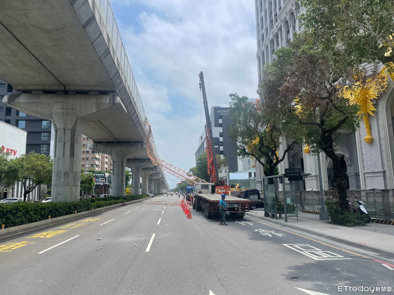 台中市南屯區文心南路上工地今天發生工安意外,業者在頂樓施工拆除塔吊時,不慎造成塔吊掉落,砸中捷運車軌,導致行進中捷運車廂損毀,造成8人受傷,1人死亡。