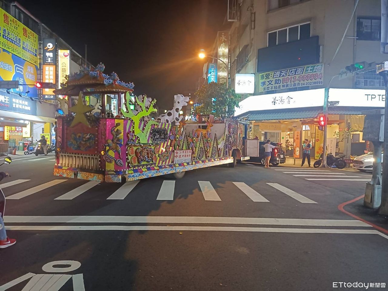 ▲▼台中市樂成宮媽祖遶境時,1輛花車突然熄火「顧路」,直到2個半小時後才暢通。(圖/民眾提供,下同)