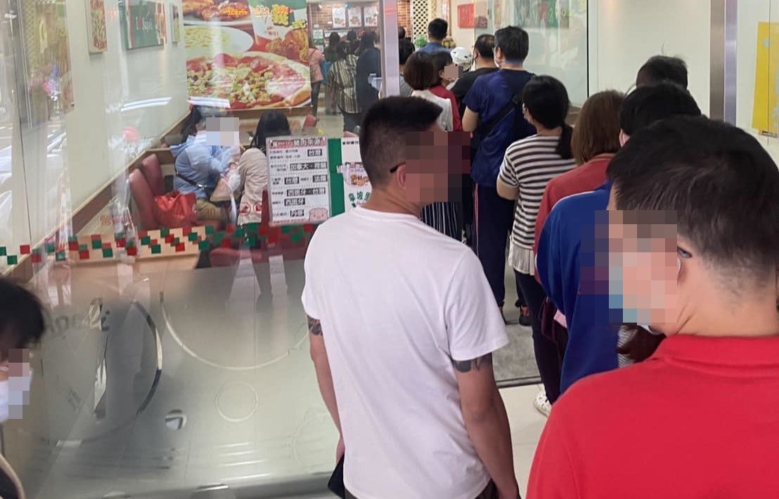 有網友在臉書社團「爆廢公社二館」上發文拋問,「我就想問,為什麼母親節大家都要吃披薩?」從她貼出的圖片可見,該連鎖披薩店的排隊人龍頗長,約有20多人,甚至有客人已排出店門外。