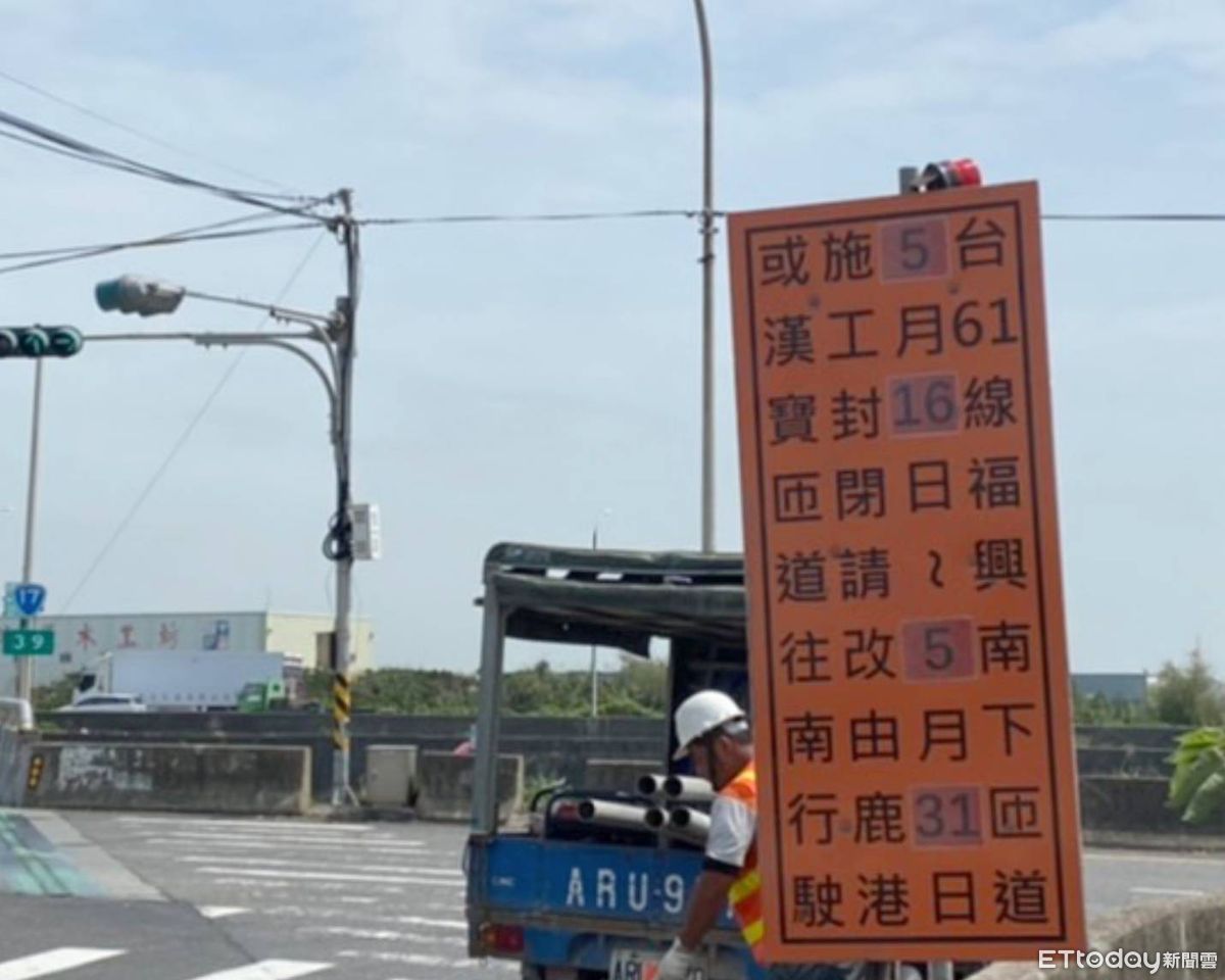 彰化縣政府為辦理「彰濱鹿港工業區南側鹿安橋(彰30)銜接西濱快速公路橋下道路工程」,將於明(16)日至31日,採全日封閉台61線福興交流道(往王功方向)南下匝道,福興交流道(往龍井方向)北上匝道仍保持通行,請用路人依現場指示牌面,改由鹿港或漢寶匝道繼續往南行駛。